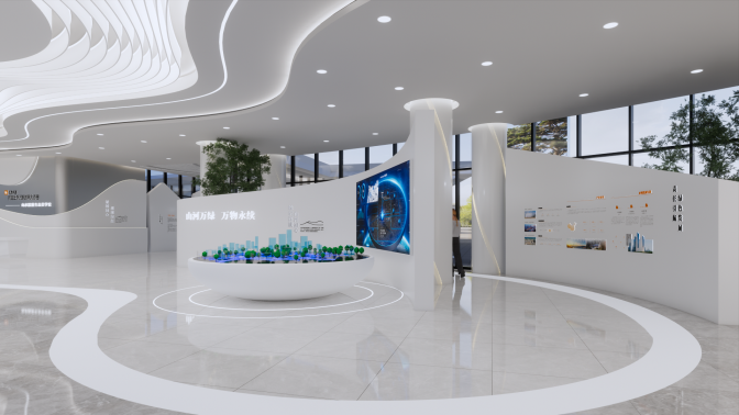水沐风华2024年底中标河源展厅项目,总设计面积3600平方米,以“山水绿境"为美学主题脉络,串联城市垃圾治理的“现实一未来”时空轴线,从现实的困境到未来的愿景,“山之态,水之韵"贯穿始终,不仅是审美符号,更是治理哲学。当我们以山水的格局重塑垃圾治理,让科技与人文共融,让循环与美学共生,城市终将重现“青山常在、绿水长流" 的美好图景,书写人与自然和谐共生的时代篇章。项目一经推出,被客户主要领导盛赞:神来之笔!成为深能环保在粤东地区最大的生态科谱教育基地。